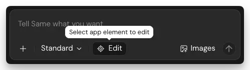 在 Same.new 平台上,你可以自由地对项目进行实时修改,比如调整按钮的边框半径、颜色样式等界面元素。只需点击“编辑”,选中目标组件,即可立即更改。所有这些操作都不消耗任何 Token,真正实现“所见即所得”。