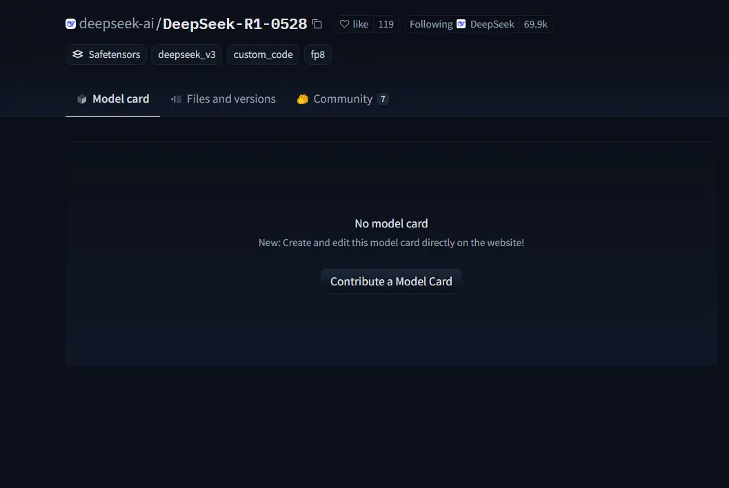 目前官方已经在Hugging Face上释出了DeepSeek-R1-0528模型,不过此模型的信息尚未填写,以下关于模型的升级点来自DeepSeek-R1自己的回答,可能不太准确,大家还需等待官方更新信息。
