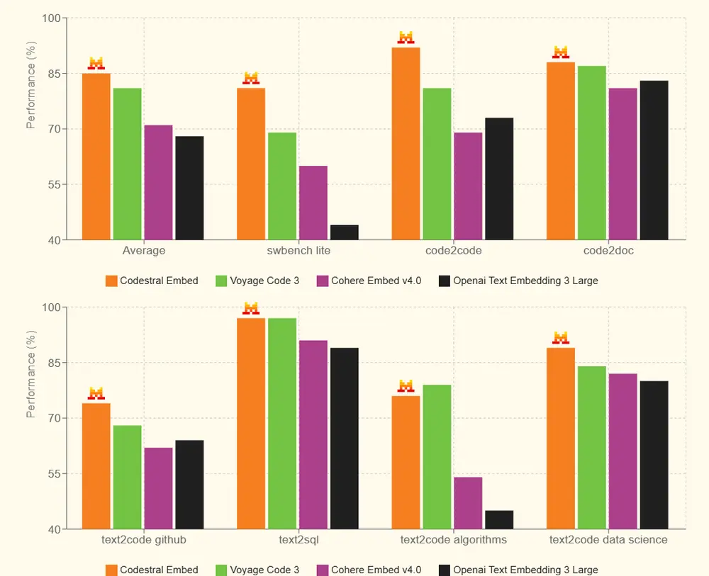近日,法国知名 AI 初创公司 Mistral AI 正式发布了其首款面向代码任务的嵌入模型:Codestral Embed。这款模型一经推出,就在多个基准测试中表现亮眼,甚至宣称在实际场景中超越了 OpenAI 和 Cohere 等行业领先者。