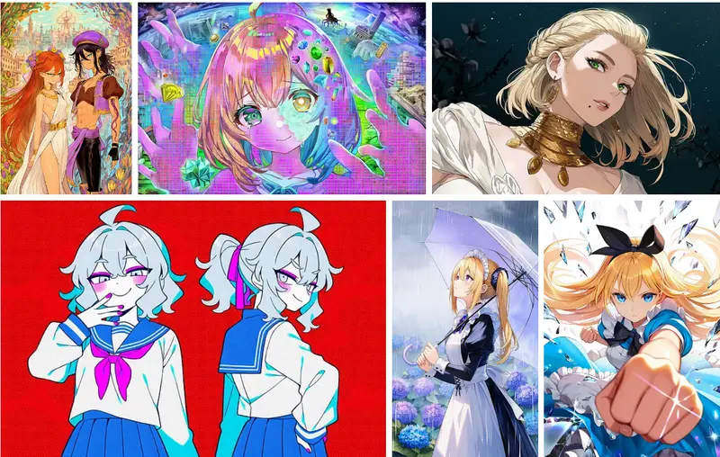 为了帮助用户快速上手,NovelAI 提供了配套的图像画廊资源。这些图像包含完整的元数据信息,只需将其拖入图像生成页面,即可一键导入提示词和参数设置,轻松复现或修改已有作品。
