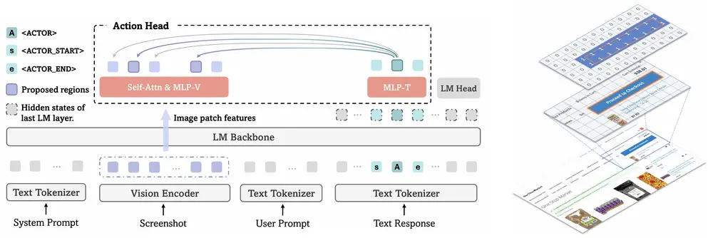 引入一个特殊的 <ACTOR> 标记,通过自注意力机制,与所有相关的视觉块(vision patch)进行对齐。这种方式使模型能够: