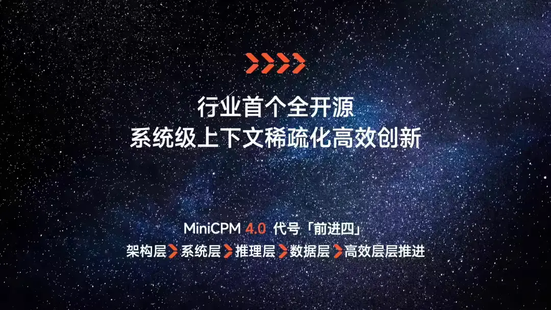 6 日晚,面壁智能正式发布了新一代高效端侧大语言模型 MiniCPM 4.0。该系列模型以极致轻量化和高效推理为核心目标,结合自研 CPM.cu 推理框架 和稀疏注意力机制,在端侧设备上实现了惊人的性能提升——极限场景下最高提速达 220 倍,常规任务平均提速约 5 倍。