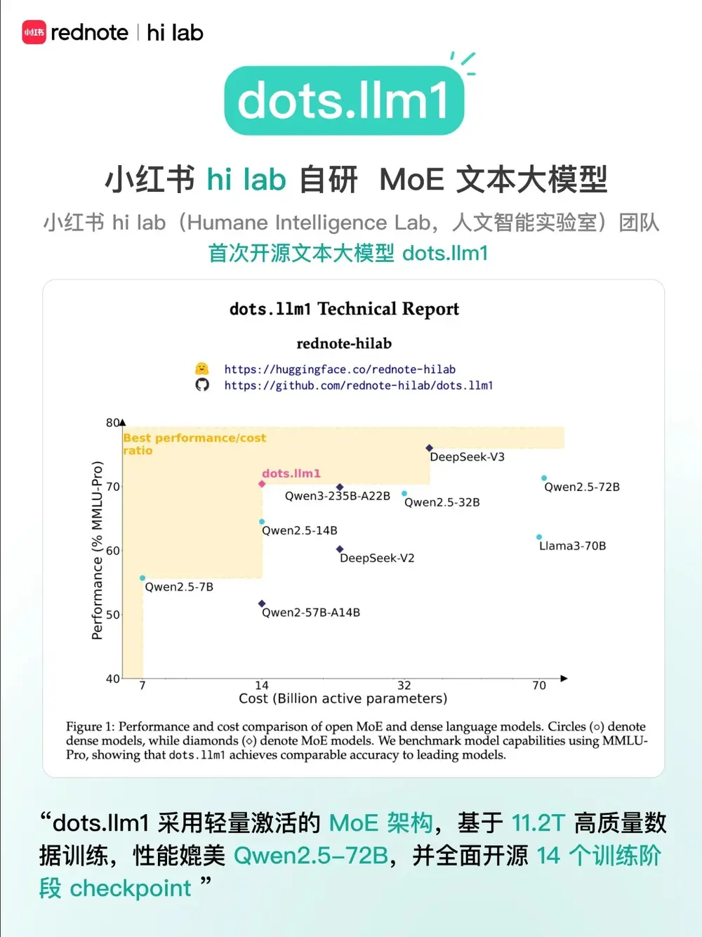 - 模型:https://huggingface.co/collections/rednote-hilab/dotsllm1-68246aaaaba3363374a8aa7c