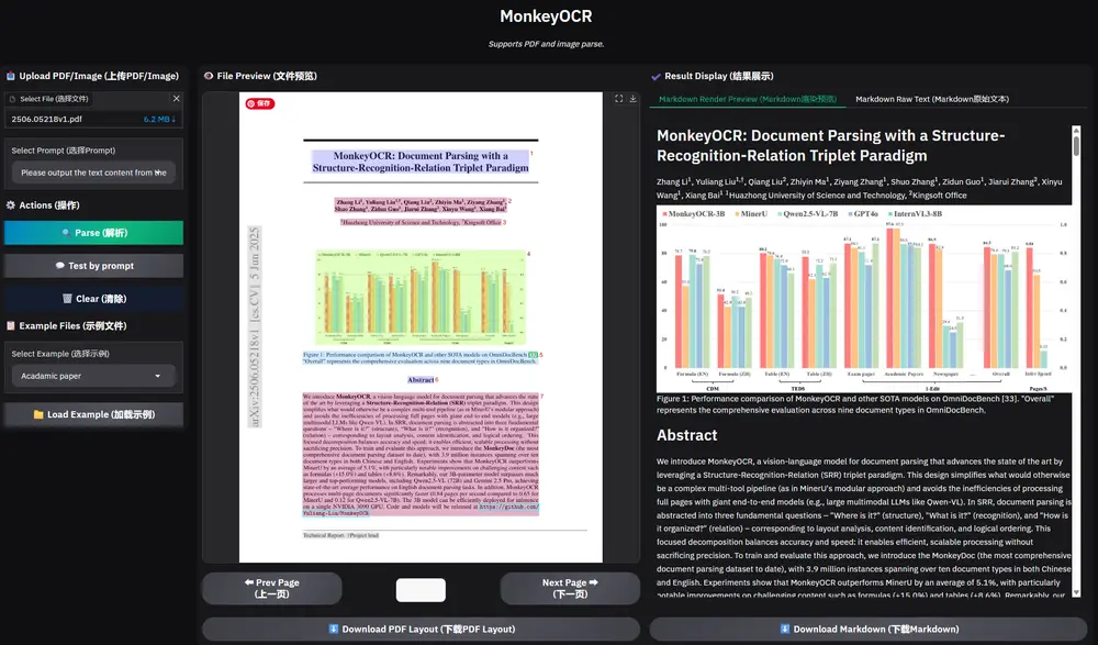 目前,MonkeyOCR主要面向扫描版或排版清晰的电子文档,暂不支持拍摄文档(如照片、模糊图像)。但研究人员表示,后续版本将持续优化并扩展至更多使用场景。