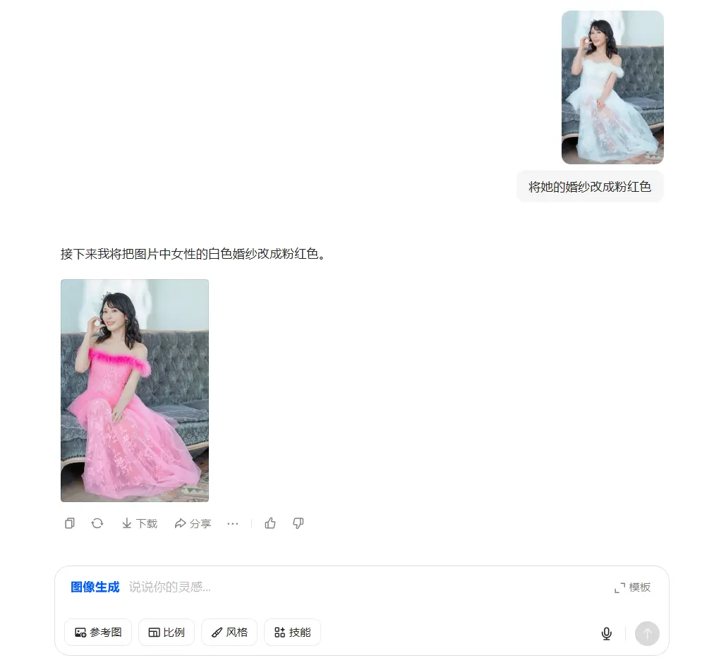 用户只需打开豆包 App 的对话框,点击“AI 生图”按钮,上传一张参考图片,并输入一句简单的指令,就能快速完成创意修图。