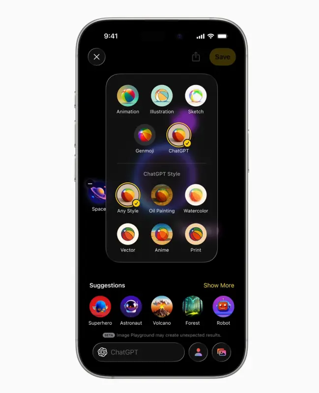 在今年的 WWDC 上,苹果宣布了一个重要更新:将 ChatGPT 整合进 Image Playground,以提升图像生成的质量和灵活性。