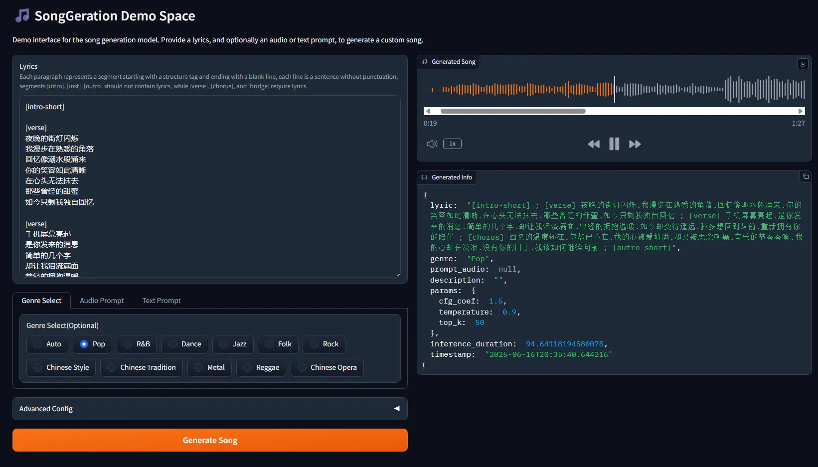 - Demo:https://huggingface.co/spaces/waytan22/SongGeneration-LeVo