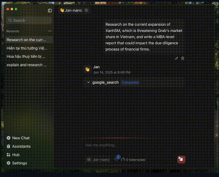 Jan-Nano 目前已集成于 Jan Beta 版本中,这是一个完全支持本地运行的开源 AI 助手,可作为 ChatGPT 的替代方案使用。