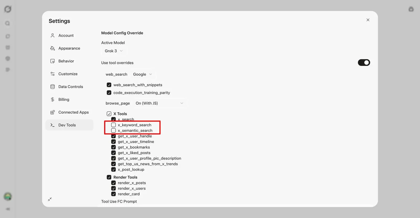 除了屏幕共享外,Grok 的内部配置中还出现了两个新的工具调用参考: