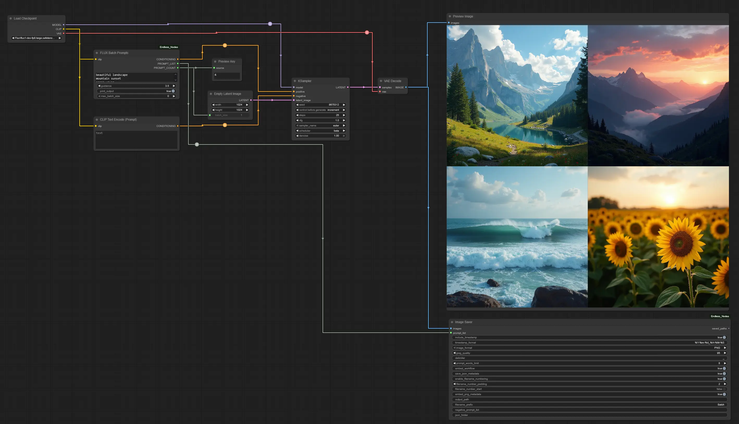 已更新批量提示节点以支持 Flux Kontext。您可以在节点中设置多个提示,GPU 将同时处理这些提示。修复了 JSON 导出功能,确保保存的 JSON 文件在拖放到 UI 上时能正确加载工作流。