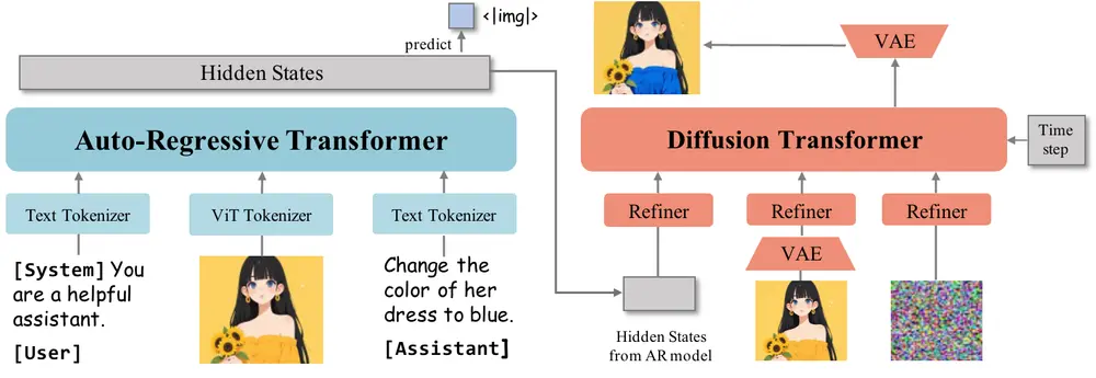 这种架构既保留了语言模型的强大推理能力,又实现了高保真、一致性强的图像输出。