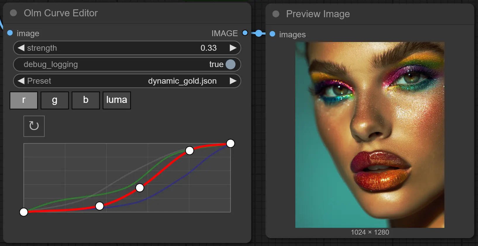 如果你在使用 ComfyUI 进行图像生成或后期处理,并希望拥有一个直观、高效的颜色调整工具,那么你一定不能错过这款新插件 —— Olm Curve Editor。