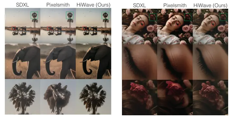 例如,HiWave能够将一个1024×1024的基础图像放大到4096×4096的分辨率,同时保持图像的全局一致性并增强细节,而不会引入常见的重复对象和视觉伪影。