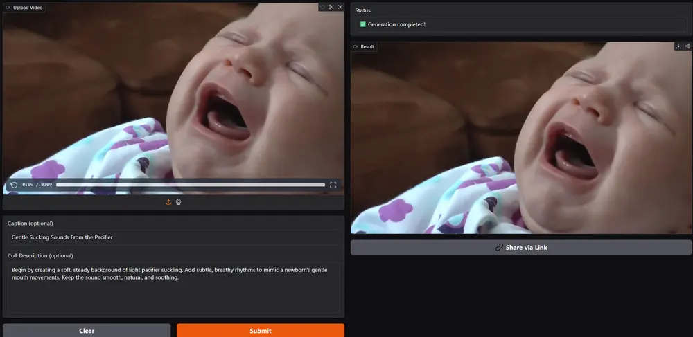 ThinkSound 是目前首个将 CoT 推理引入音频生成领域的统一 Any2Audio 框架,为视频配乐、影视制作、AI 创作等领域带来了全新可能性。