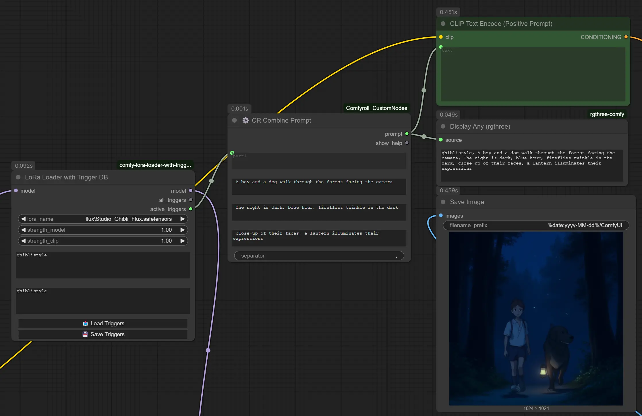 - ✅ 灵活扩展性:支持自定义触发词组合,并与提示组合节点无缝集成