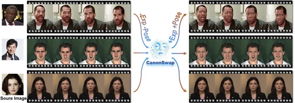 在替换过程中,CanonSwap 能够完整保留目标视频中的表情、头部动作和口型变化,使结果更加自然生动。