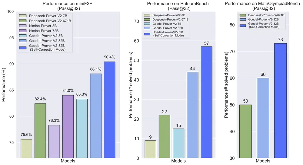 | Goedel-Prover-V2-32B | 自我纠正 | 90.4% |