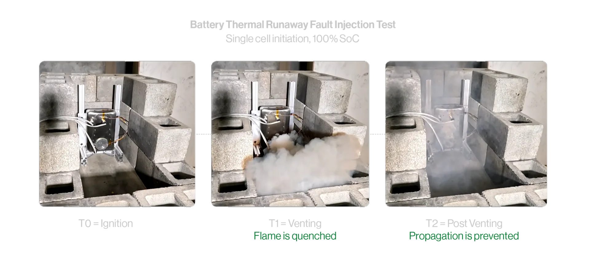 - 电池组安全策略:热扩散控制、火焰抑制排气口等多重防护