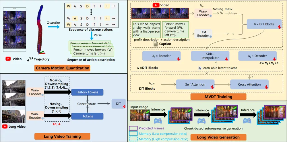 - 时空一致性保持:通过记忆机制缓存历史帧特征,减少漂移;