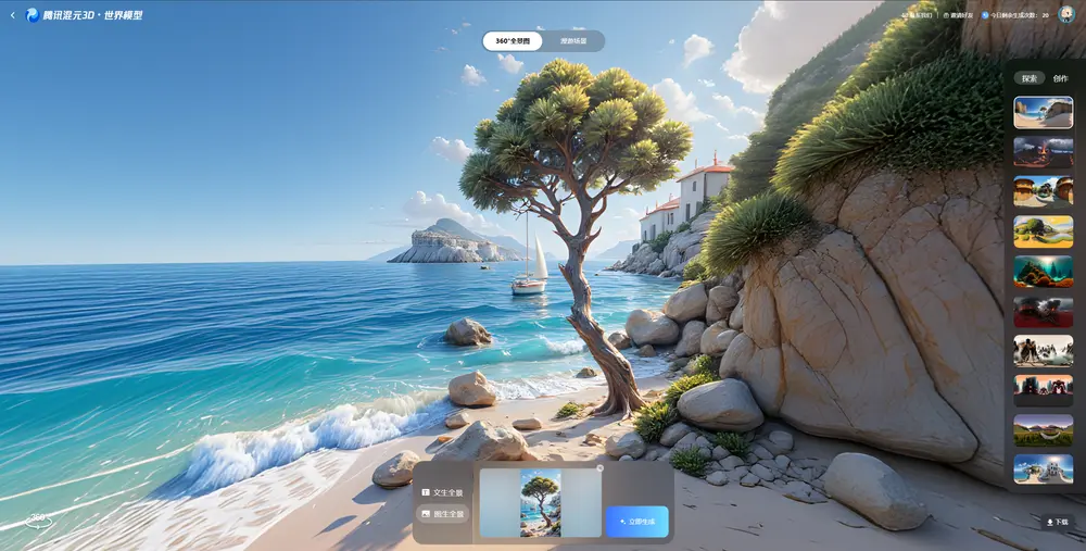 以全景图为“世界代理”,实现对整体场景的空间感知与语义理解,支持用户从任意角度观察,构建真正意义上的沉浸式体验。 - 支持网格导出,兼容主流工具链