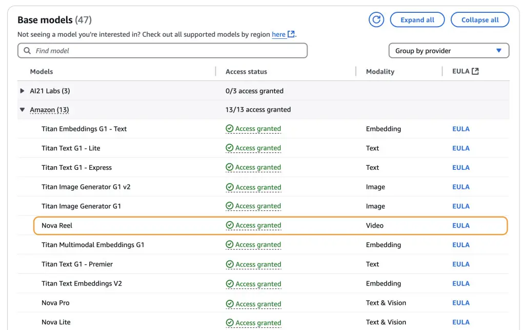 - 一旦获得批准,访问权限适用于 Nova Reel 1.0 和 1.1。
