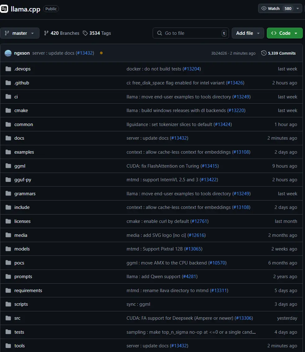 llama.cpp 的主要目标是启用 LLM 推理,优化在广泛硬件上的性能,包括 Apple Silicon(通过 ARM NEON、Accelerate 和 Metal 框架)、x86(支持 AVX、AVX2、AVX512、AMX)、NVIDIA GPU(自定义 CUDA 内核)、AMD GPU(HIP)、Moore Threads MTT GPU(MUSA)、Vulkan、SYCL 以及 CPU+GPU 混合推理。它支持 1.5-bit 到 8-bit 的整数量化,进一步提升效率和性能。项目是 ggml 库(ggml)开发新功能的主要试验场,体现了其在 AI 社区中的重要性。