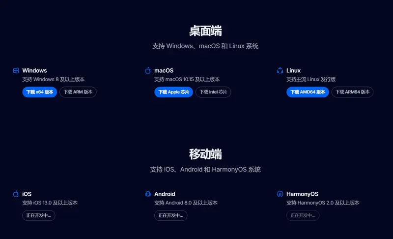 无论是Web端、桌面客户端(Windows、Mac、Linux),还是移动端App,Evo Chat都能随时随地为您提供无处不在的AI能力入口,真正实现跨平台无缝协作。