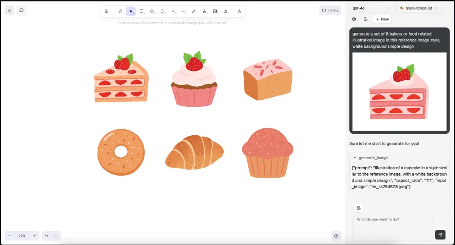 Jaaz 利用大语言模型(LLM)自动撰写提示词,并能批量生成图像或完整的故事板。这意味着你可以通过简单的对话快速获得高质量的视觉输出,无需反复调整参数。