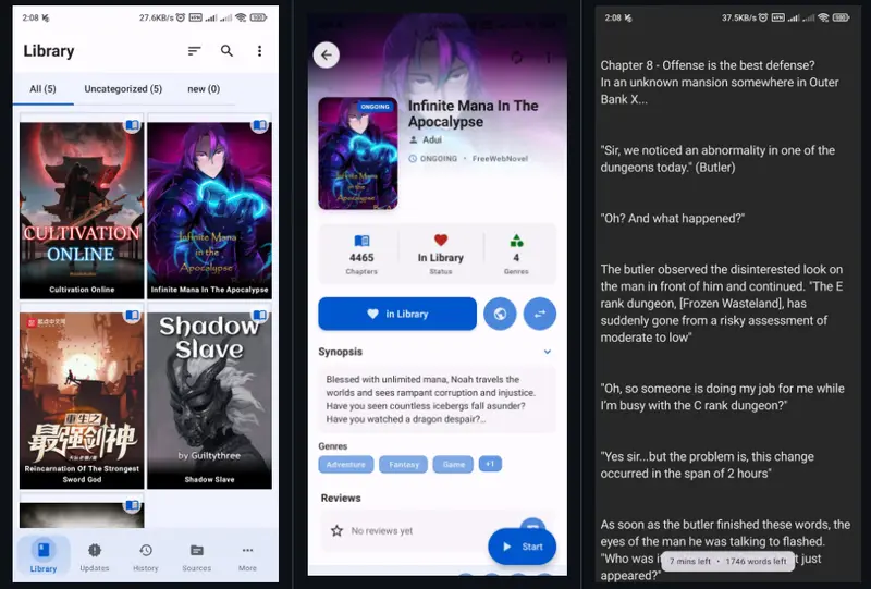 - 书库管理:自定义分类、筛选、标记阅读进度
