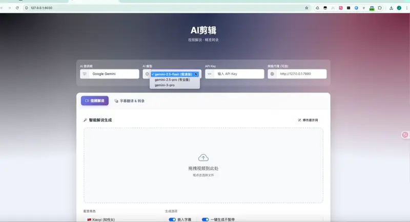 基于 Gemini 或 Qwen 等大模型,自动生成深度解说或总结文案,可适配电影、教程、纪录片等多种类型。 - 智能剪辑(核心亮点)