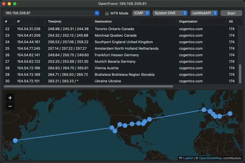 OpenTrace 是 NextTrace(一个强大的命令行路由追踪工具)的官方 GUI 封装,提供原生、跨平台的图形界面,让普通用户也能轻松使用专业级的网络诊断功能。