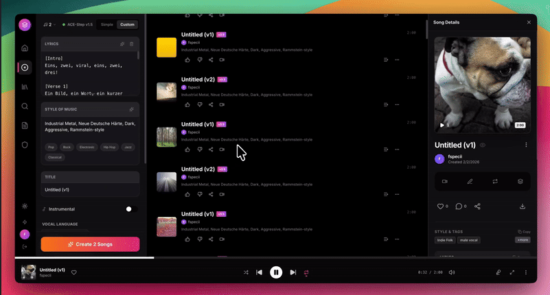 厌倦了每月为Suno、Udio支付10美元以上的订阅费用,却还要受限于队列、商业用途等诸多限制?ACE-Step UI来了——它与开源AI音乐生成模型ACE-Step 1.5无缝集成,不仅能在你的本地GPU上运行,实现永久免费、数据隐私可控,还提供了媲美商业平台的美观专业界面,让你轻松解锁全功能、无限制的AI音乐创作,堪称Suno的终极开源替代方案。