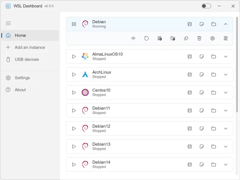- 一键控制:轻松启动、停止、终止或注销任何 WSL 发行版。