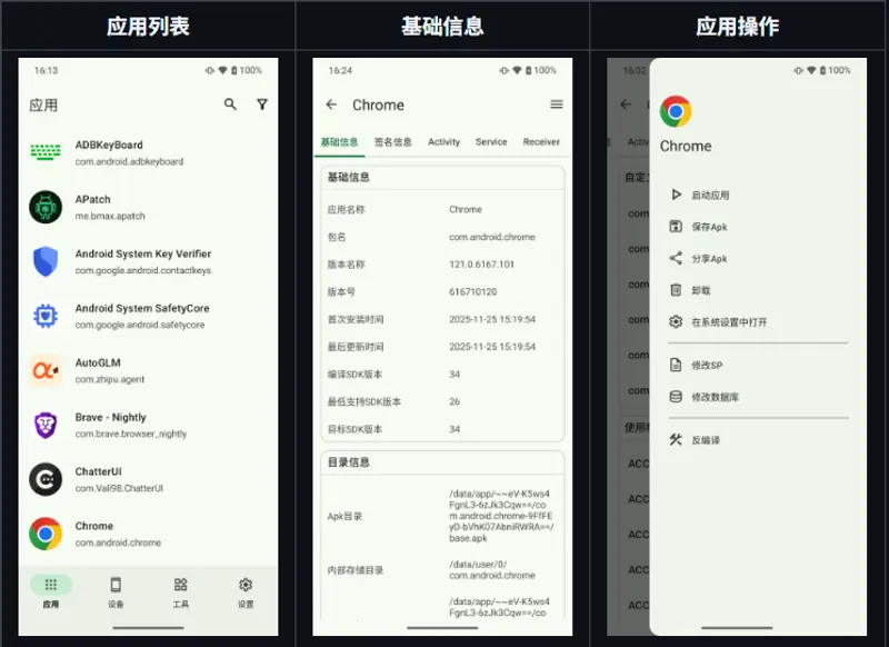 在 Android 生态中,我们往往需要安装十几个不同的 App 来完成查看设备信息、管理应用、抓包调试或提取资源等任务。 碎片化的工具不仅占用存储空间,更割裂了高效的工作流。