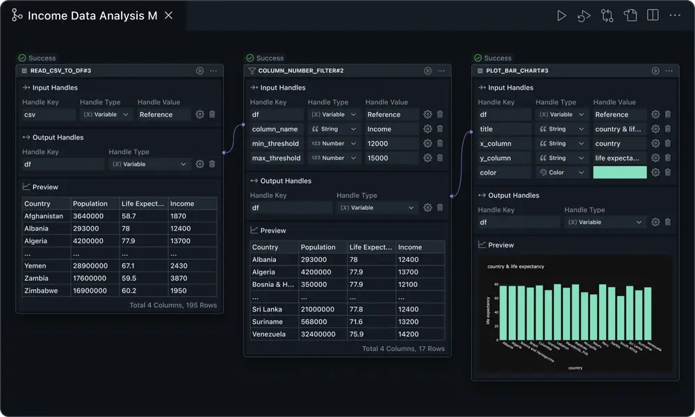 - 数据处理与分析:通过拖拽式界面快速构建数据处理工作流。