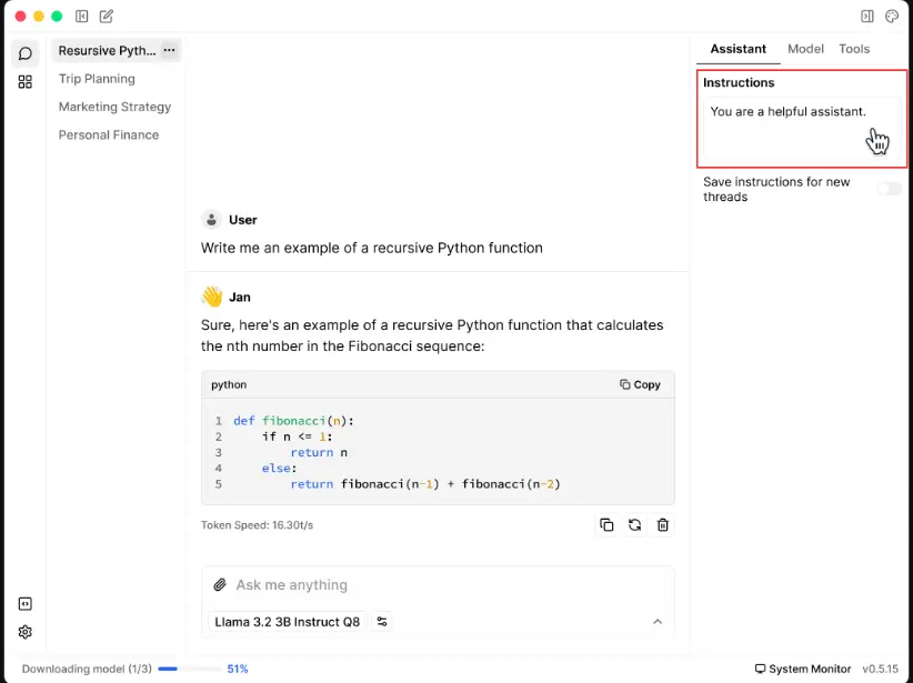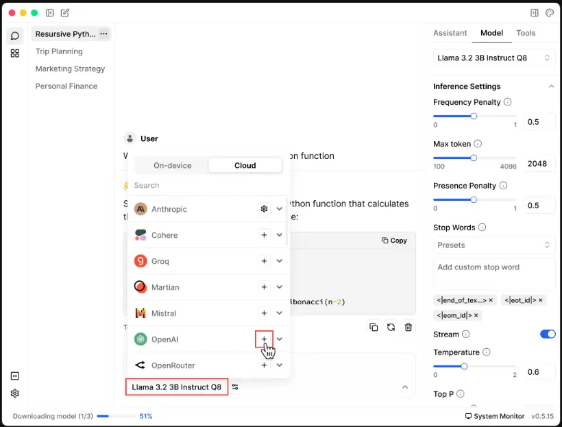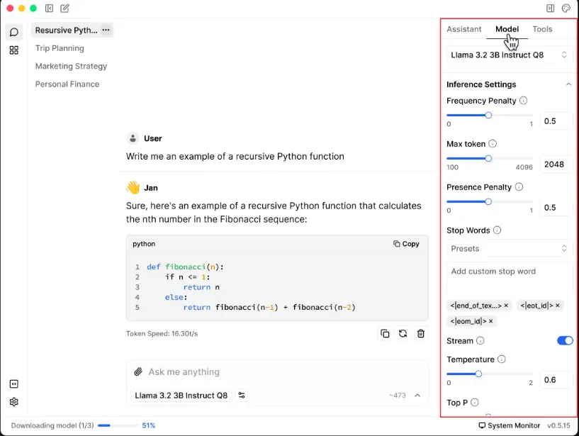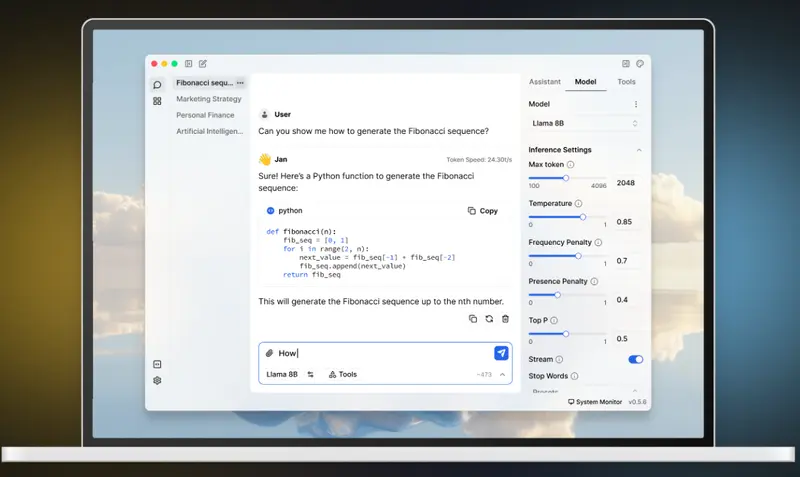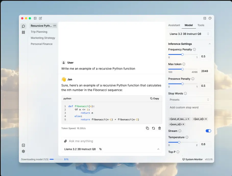 Jan 是一款由 Homebrew 开发的本地 AI 应用程序,专为普通人设计,旨在让每个人都能轻松下载、运行和使用大语言模型(LLM),同时确保完全的数据控制和隐私保护。它支持 Windows、Mac 和 Linux 多平台,并计划推出移动端版本,是一款功能强大且易于使用的工具。