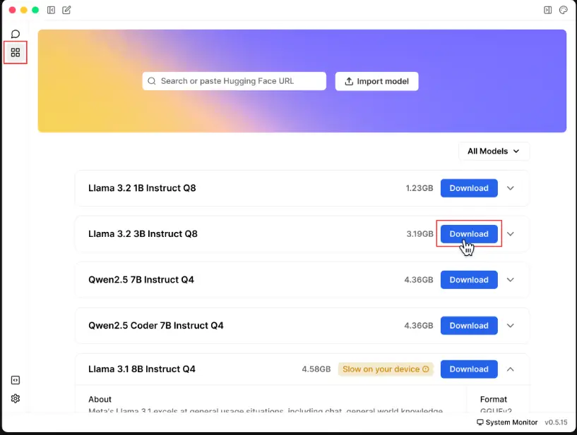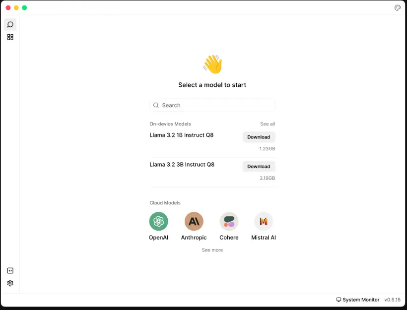 安装完成后,您将看到一个简单的界面,尚未预装任何模型。