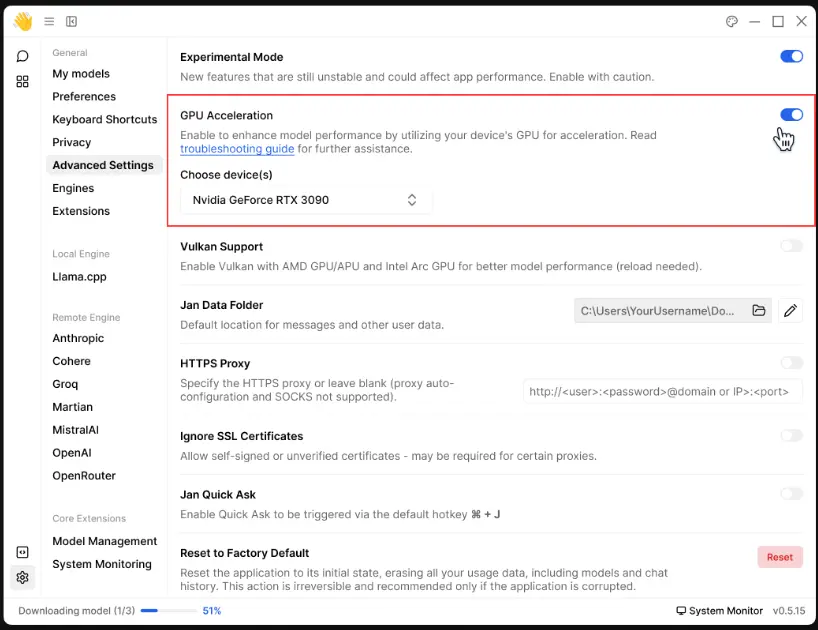 如果您使用的是 Windows 或 Linux,并拥有兼容的显卡,可以通过启用 GPU 加速提升性能:
