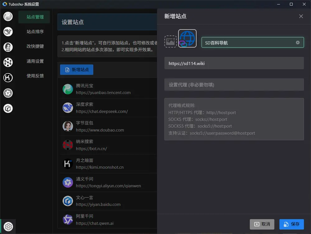 https://www.example.com。 - 点击“添加”按钮,即可将该网站添加到Tuboshu中。