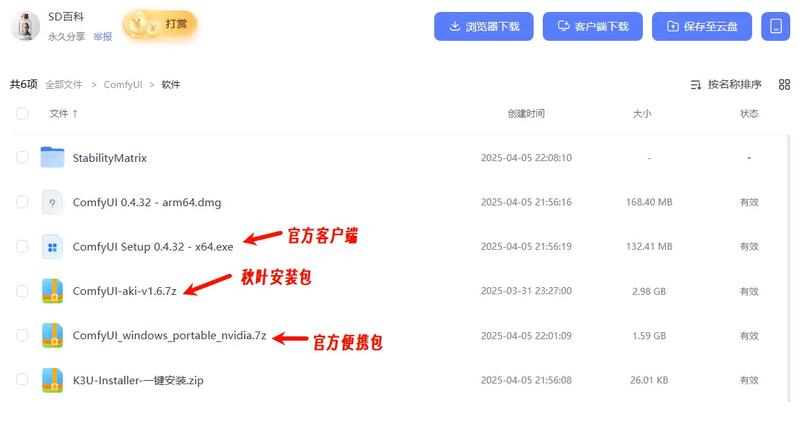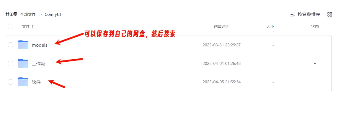 PS:以上所提到的软件都已上传到国内网盘,还有所需的工作流和模型,可保存到自己的网盘,然后搜索到自己想要的模型进行下载。