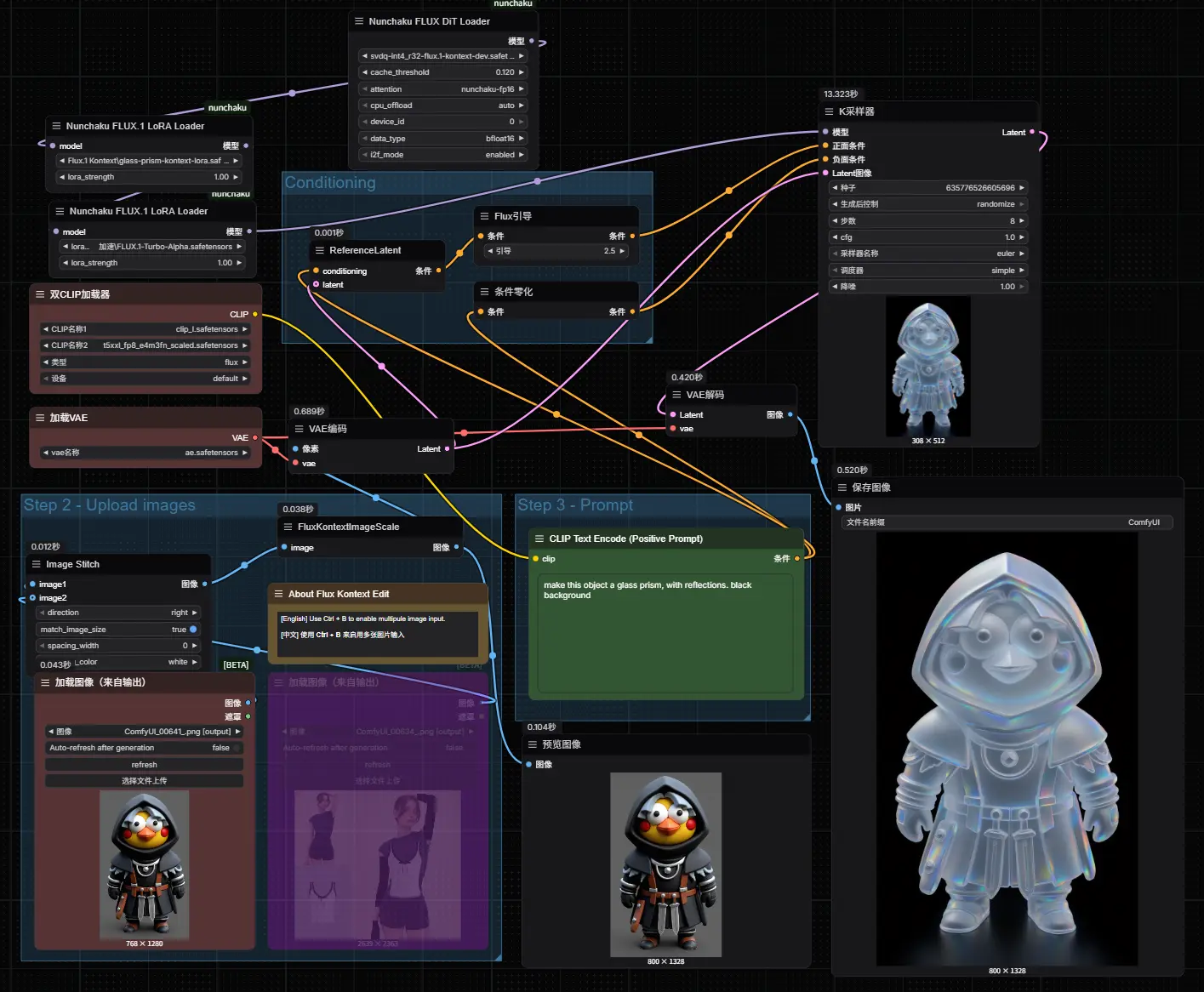 Glass Prism Kontext Dev LoRA 是专为图像编辑模型 FLUX.1 Kontext [dev] 设计的一个小型 LoRA(低秩适应)模型,能够为任意对象添加逼真的“磨砂玻璃棱镜”视觉效果,包括光线折射和反射等细节。