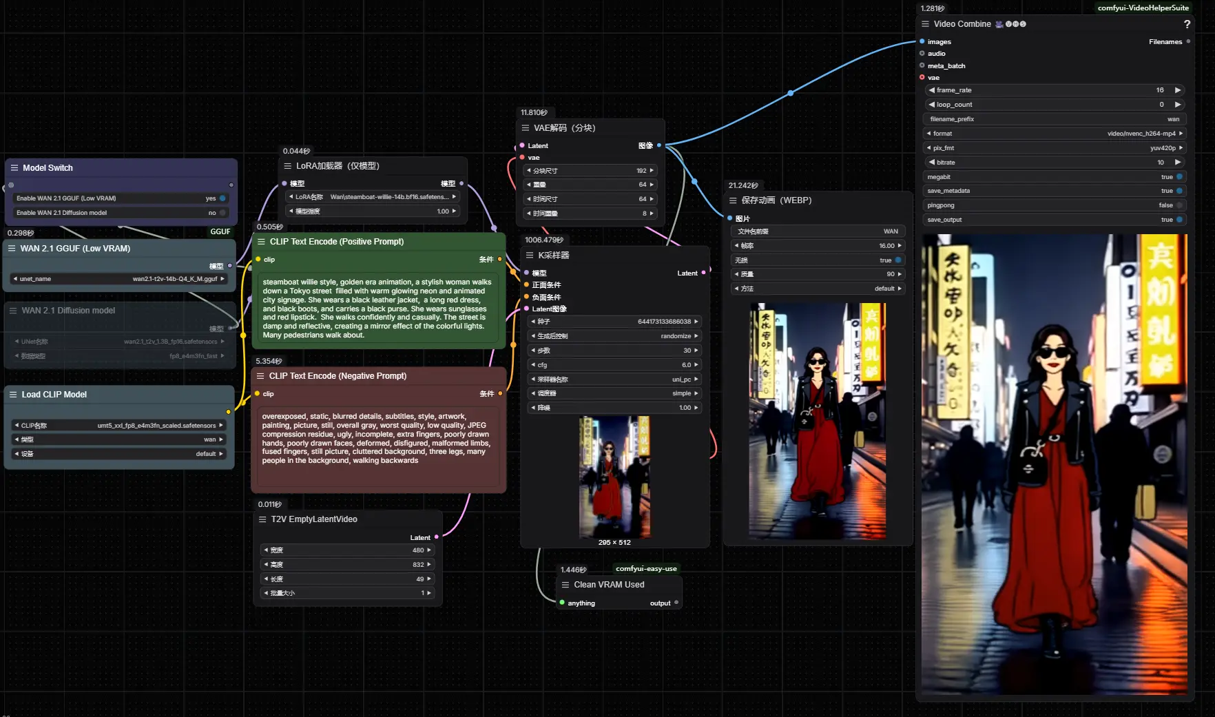 《汽船威利号(Steamboat Willie)》是迪士尼于 1928 年出品的全球首部有声动画作品,标志着米老鼠这一经典角色的首次亮相。这部动画不仅开创了有声动画的历史,还奠定了迪士尼在动画领域的基石地位。目前,《汽船威利号》的版权已经进入公有领域,这使得其角色和场景成为许多第三方创作的灵感来源。今天要介绍的Steamboat Willie ,正是以《汽船威利号》为基础进行训练的Wan2.1 T2V Lora模型。