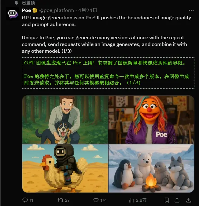 Poe 通过集成 OpenAI 的 GPT 技术彻底改变了图像生成。此次集成允许用户同时生成多个版本的图像,在生成过程中发送额外的请求,并将 GPT 与平台上的任何其他模型相结合。开发者还可以使用 GPT-4o 通过 App Creator 构建基于图像的应用程序,或者将其与 Kling 或 Veo 2 等视频模型配对使用。GPT-4o 现已在 Poe 的在线平台和所有 Poe 应用程序上可用。