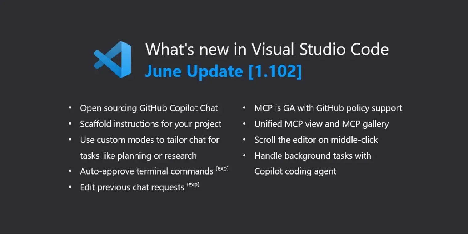 VS Code 1.102新增Copilot Chat自定义模式、命令自动批准和MCP支持