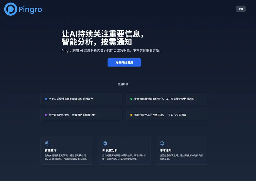 你是否曾经为了追踪某个重要信息而反复搜索?比如OpenAI、Anthropic 是否发布了新模型、或者新款 iPhone 17 的最新消息?如果你觉得手动查询太麻烦,那么 Pingro 可能就是你的救星。