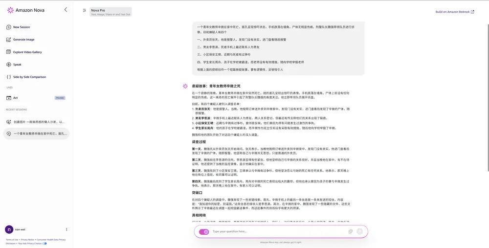 Amazon Nova支持多个型号Nova模型,涵盖理解和内容生成两大类别,它包含四种理解模型(Amazon Nova Micro、Lite、Pro 和 Premier)、两种创意内容生成模型以及一种语音到语音模型(Amazon Nova Sonic)。这些模型能够处理多模态输入(如文本、图像、视频),并生成相应的输出,如文本、图像、视频和语音。