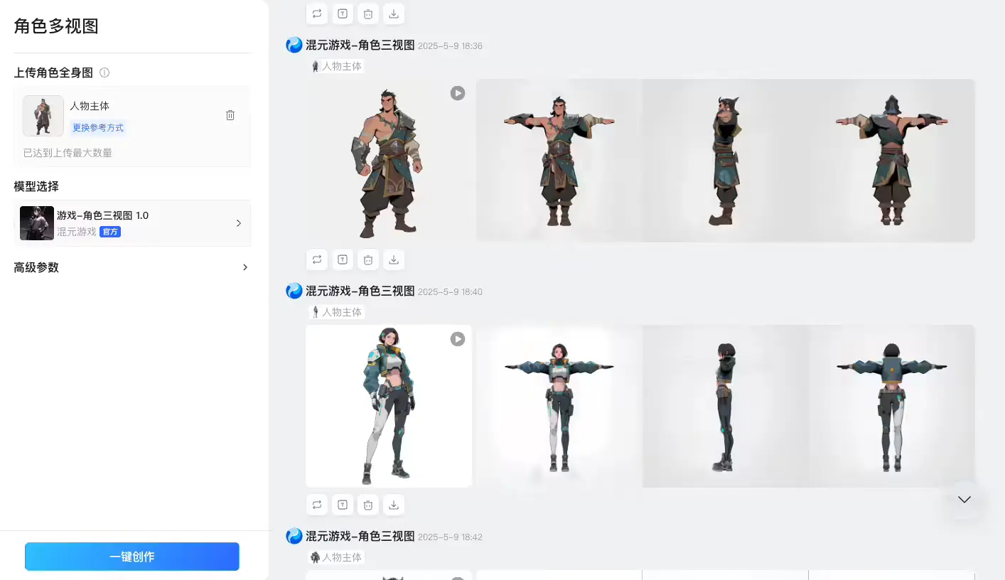 过去,游戏角色三视图的绘制通常需要 12 小时以上。如今,设计师仅需上传一张角色原画,混元 AI 即可一键生成符合行业规范的标准三视图及360°旋转视频,用于后续建模。