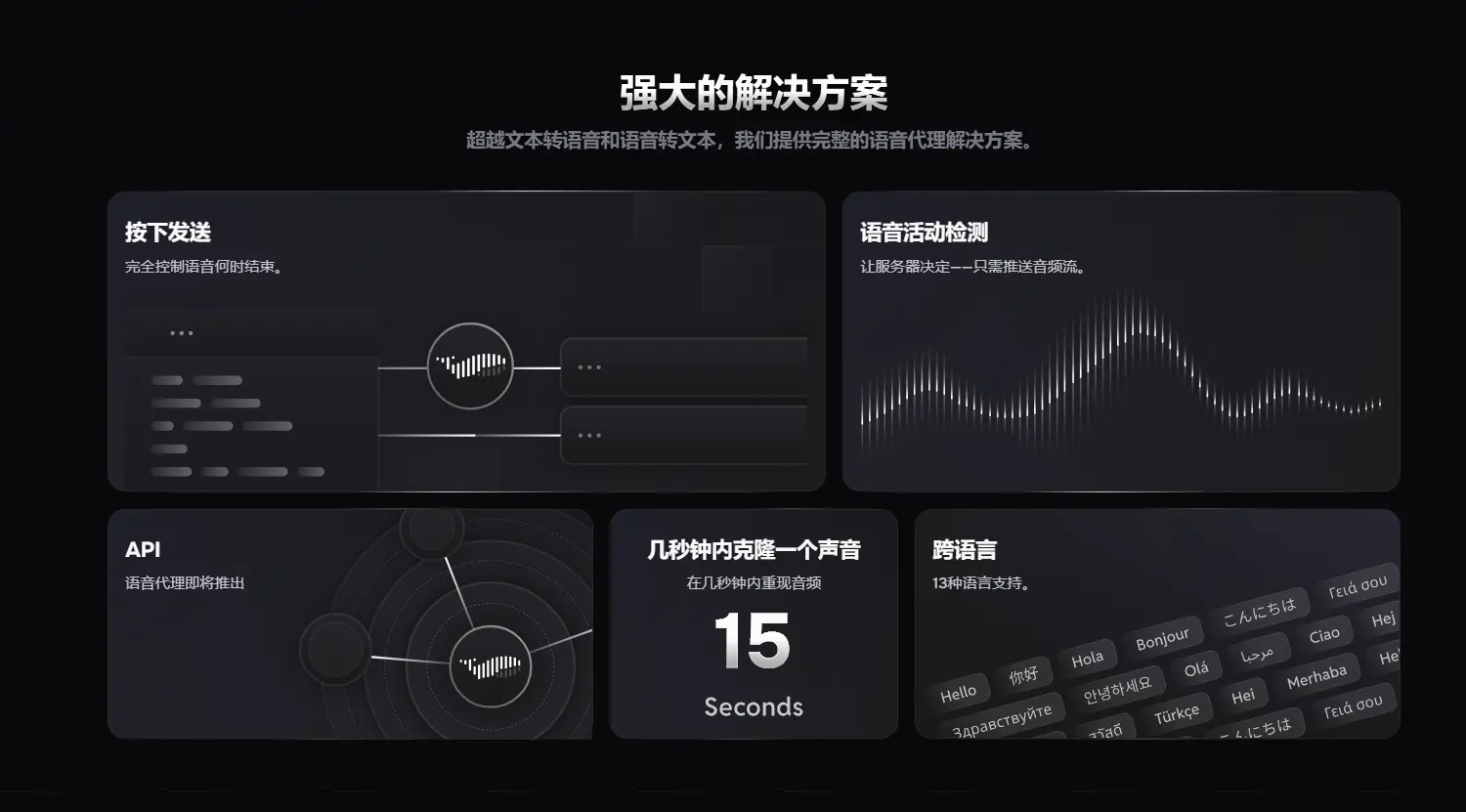 | 语音克隆 | 15秒语音片段即可克隆,高质量输出 | ✅ |