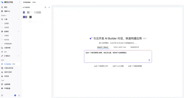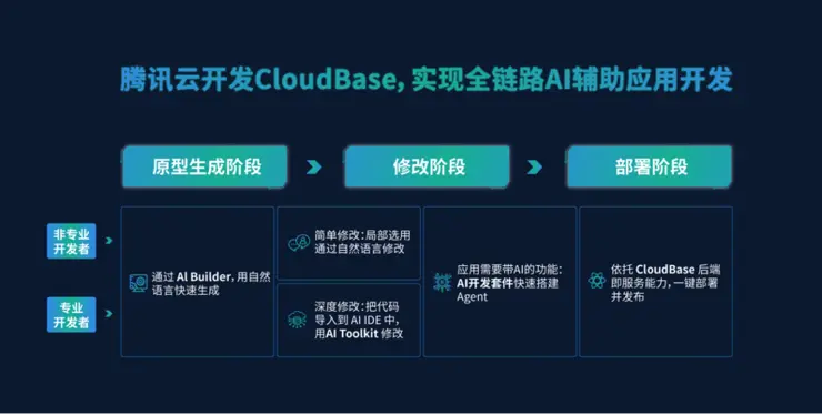 作为面向 AI 时代的云原生一体化开发平台,腾讯云开发 CloudBase 致力于帮助开发者快速构建小程序、Web 和移动应用。此次 AI Builder 的上线,标志着该平台正式将 AIGC 技术引入应用开发全流程。