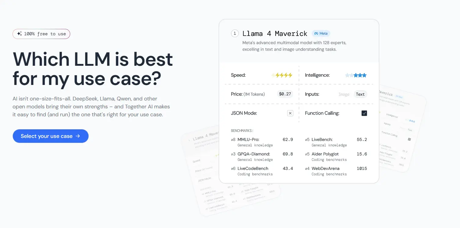 Together AI 推出了一款全新的免费工具 —— Which LLM,帮助你根据实际使用场景,快速筛选并运行合适的开源大语言模型。